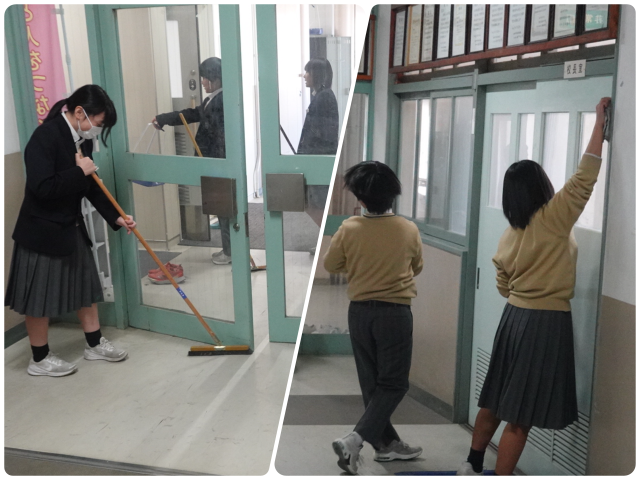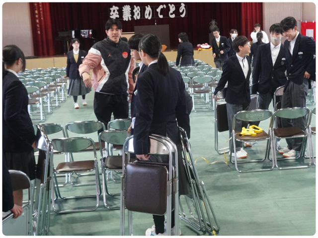 午後からの準備では、在校生が心を込めて清掃や会場設営に取り組んでくれました。卒業生のために一生懸命動く姿から、先輩への感謝や思いが伝わってきました。在校生の思いを胸に、明日の式に臨もうと思っています。