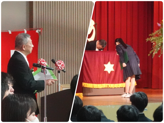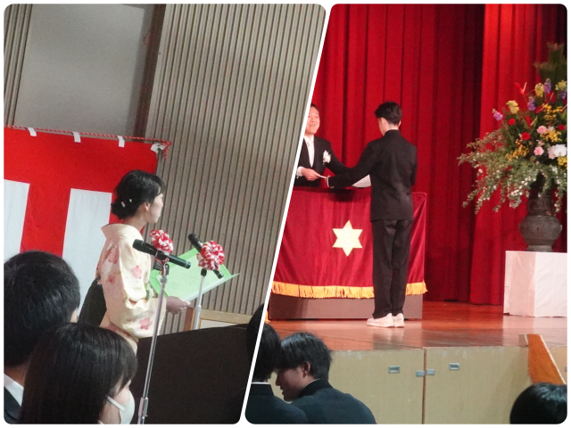 担任の先生から名前を呼ばれ、卒業証書を受け取る一人ひとりの表情がとても印象に残りました。満面の笑顔の人、少し照れくさそうに「ありがとうございます」とお礼を伝える人、緊張した面持ちの人。それぞれの思いが伝わってくる時間でした。