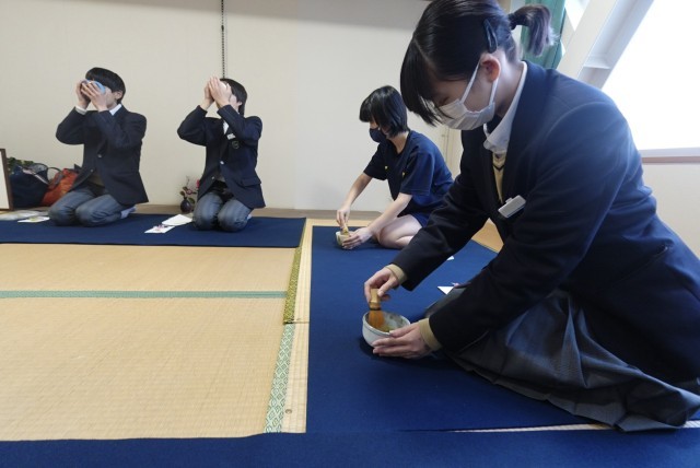 本日の放課後、今年度最後となる茶道サークルの活動を行いました。お茶を受け取る所作ひとつにも決まった作法があり、生徒たちは背筋を伸ばしながら、日本の伝統文化に触れる時間を楽しんでいました。