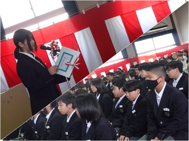 式辞の中で、しっかりと顔を上げ、こちらを見て話を聞こうとする姿勢がとても印象的でした。また、代表生徒による誓いの言葉からは、新たな学校生活への期待と決意が伝わり、大きなワクワク感で心が満たされました。