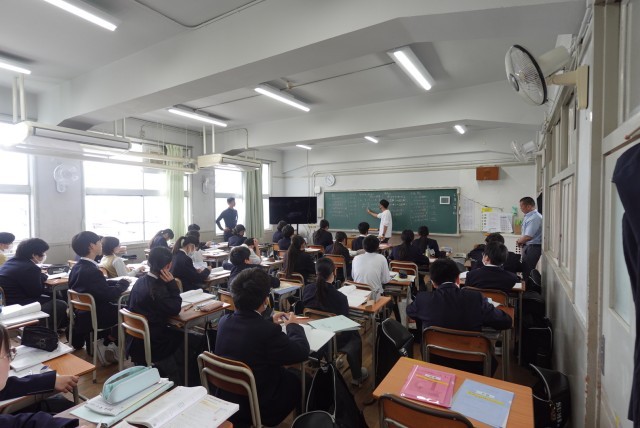 教室では、先生方が普段通りの落ち着いた雰囲気で授業を進めていましたが、生徒のみなさんは少し緊張した様子も見られ、いつもとはちがう表情をのぞかせていました。
