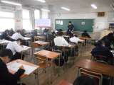 3年生の各学級での期末テスト第3日目の様子です。 <写真上>3年1組 <写...