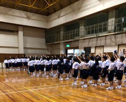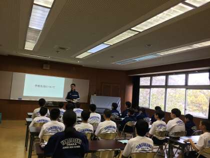 宿舎の中でいくつかのグループに分かれて、学校での過ごし方を学んでいます。