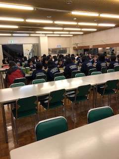 野外活動センターに来て、1つ目のガイダンスが終わり、美味しいご飯を食べました!