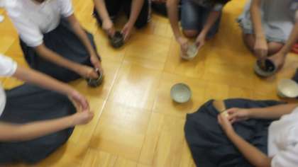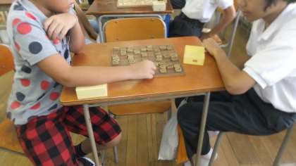 中学生と将棋をしました。 茶道部でお茶をたてました。