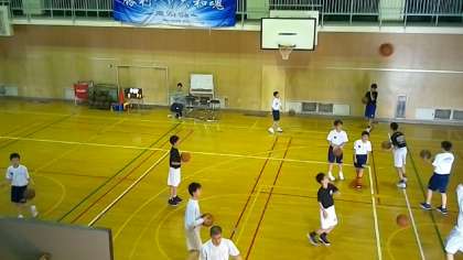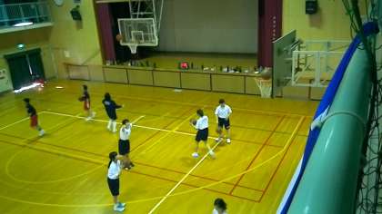 ウォーミングアップをしているところです。バスケットボール部の部員は、今日もみんな頑張っています。