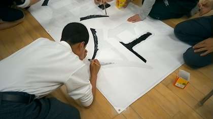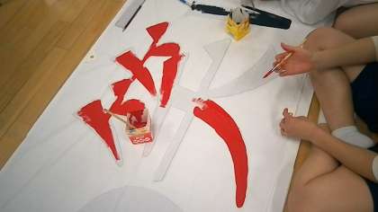 今日、美術部は生徒会と協力して生徒会スローガンを作っていました。今年は美術部が手伝ってくれたおかげで去年より早く終わったそうです。