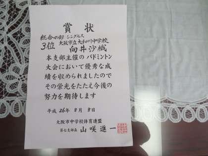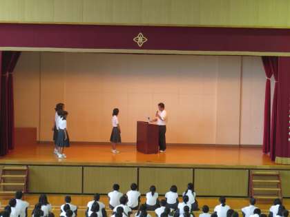 部活動の表彰 バドミントン 水泳同好会 よく頑張りました(9月8日)