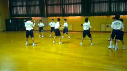 卓球部の先生は卓球の経験がないながらも一緒に素振りなどをしています。今日も卓球部は楽しくみんなで頑張っています。