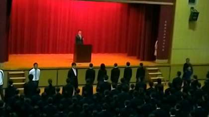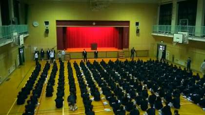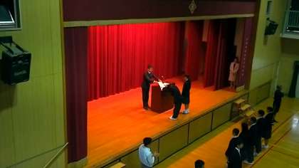 1年生の学級委員の認証式と、バドミントン部の表彰がありました。