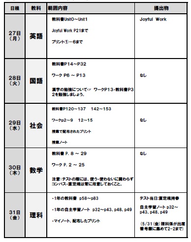 6限終了後、20分間テストを実施(15時20分から配布、15時25分〜15時45分)