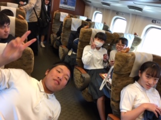 博多駅に到着し、さくらに乗り換えて熊本に向かっています。快適な列車の旅です!