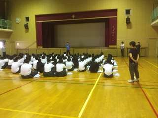学年集会では、毎週違う先生が学校生活や将来についてのお話をされます。