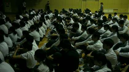 5月23日(木)の1時間目、修学旅行で知覧に訪れていた3年生と中継でつなぎ、1・2年生合同で平和学習に取り組みました。