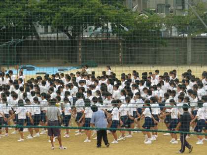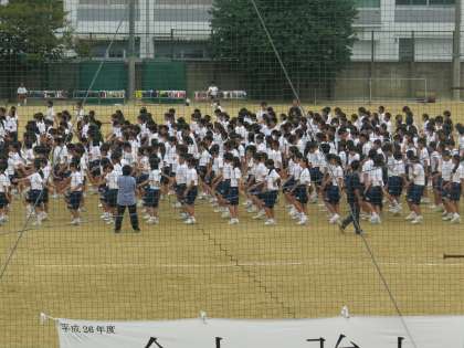 台風が近づくなか、体育大会予行を行いました(9月24日)