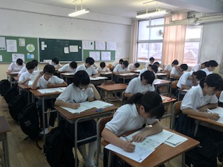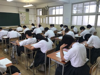 テストです。一学期習ったことを自分の力にしてしっかり発揮してほしいと思います。