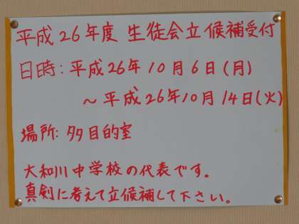 後期 生徒会役員選挙 立候補はじまる (10月9日)