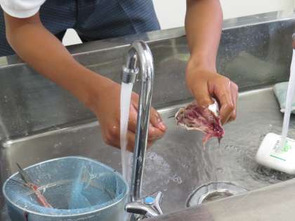 調理実習2年 いわしをさばき フライに チャーハン1時間でできたよ(10月8日)