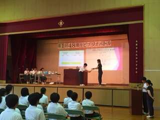 各クラスで選ばれた子どもたちが制限時間内で自分のオススメの本を紹介し、紹介を聞いて1番読んでみたいと思われた人が優勝となります。