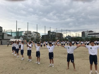 朝からの雨でグランドの状態は良くはありませんが生徒たちはみな一生懸命に取り組んでいました。