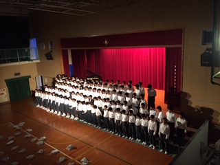 今日は体育館で文化発表会と合唱コンクールの練習をしました。