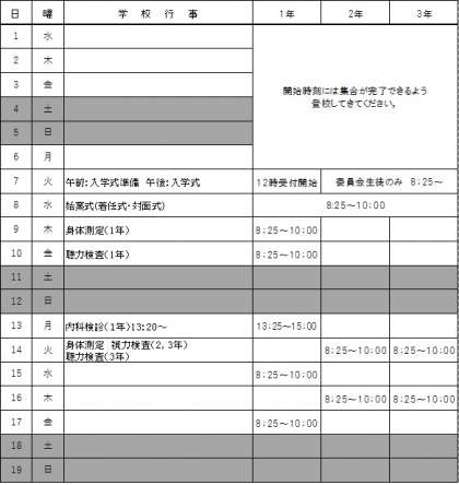 ・ただし、 4 月 8 日 (水曜日) は登校日とし、始業式を実施します。