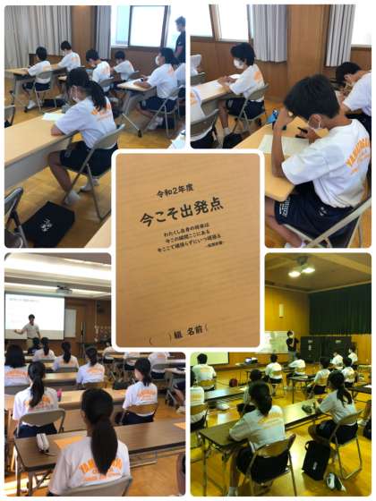 1年生は、先週一週間の学校生活を振り返り、これからの私たちの意気込みを再確認する3時間を過ごしました。学校生活について、授業の受け方について、集団“考”動についての学習しました。