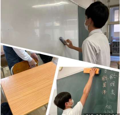 また、今日は自発的に黒板や机をきれいに清掃したり、一年生が格技室で授業をした後片付けを率先して行ってくれました。一年生の時と比べてずっと心が成長しているなと感心しました。