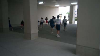ピロティーで部活をしていたのは、野球部、サッカー部、陸上部、女子バスケットボール部です。