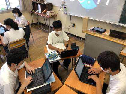 3年生社会科では、Chromebookを活用した班学習を行っています。