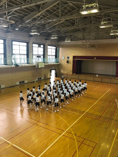体育大会名物の3学年が合同で取り組む集団演技(男子:フィジカルパフォーマンス 女子:ダンス)の練習が始まっています。完成度を高めていくのはこれからですが、やる気は例年以上です。小さな力を積み上げて思い出深い取り組みにしましょう。