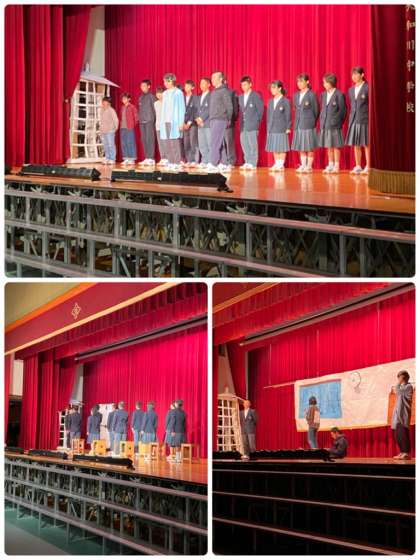 本日、約2週間の取り組み週間を経て文化発表会の当日を迎えました。2年生全員で取り組んだ「風の電話〜風に乗せた想い〜」です。すばらしい演技でいろんな人に感動を与えれたのではないでしょうか。