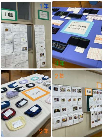 家庭科、美術科の展示作品は夏休みの課題や授業中に取り組んだものです。