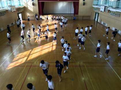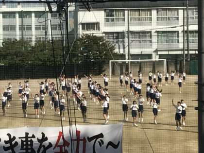 男女で別れて団体演技練習に取り組んでいます。