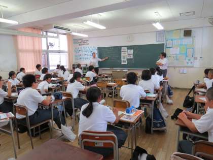 マーク先生 1年2組で授業自己紹介 英語でネ (8月28日)
