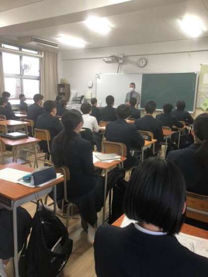 写真は、集団面接を終えた後、校長先生よりご講評をいただいている様子です。「緊張した」「言いたいことが上手く伝えられなかった」など、様々な感想を聞きました。