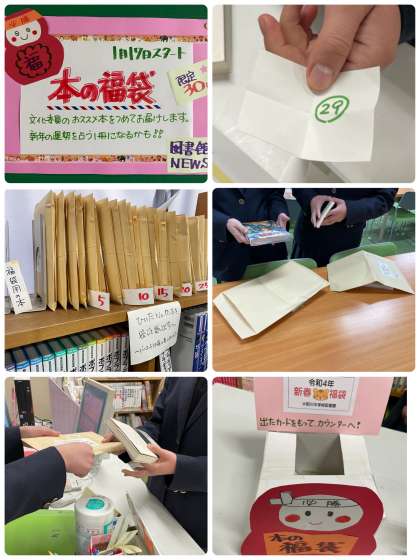 通常の福袋同様、中身が見えない状態で借りるため、いつもとは違う出会いがきっとあると思います。文化委員おすすめの本を選んでいるので、ぜひこの機会に普段読んでいないジャンルの本にも触れてみましょう。
