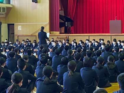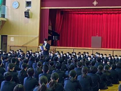 先輩代表からの「歓迎の言葉」も1年生代表の「喜びの言葉」もしっかり全員が耳を傾けていたのは立派です。