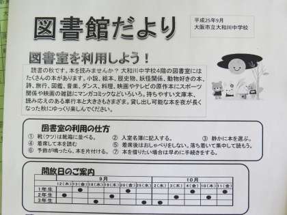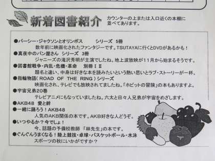 図書館だよりが発行されます。 読書の秋 ゆっくり本をよみましょう(9月9日)