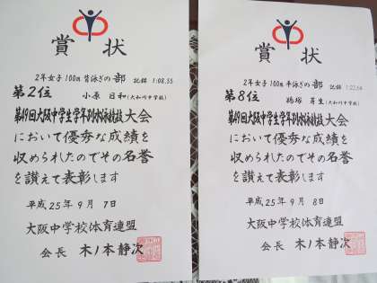 水泳部 大阪中学校体育大会での活躍 (9月11日)