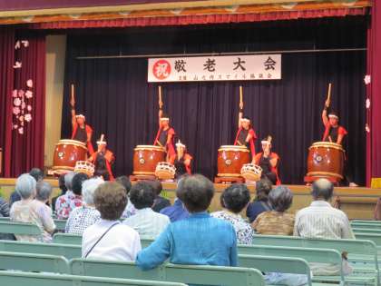 9月15日(日)山之内小学校で山之内地区敬老大会が行われました。セレモニー&演芸大会  大先輩の皆さん。いつまでもお元気で。見守ってくださいね。