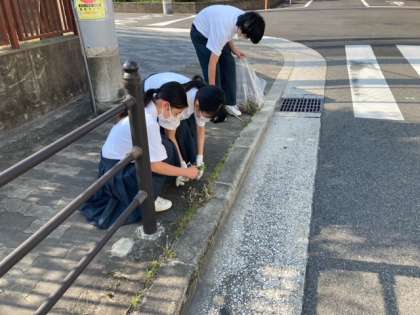 朝から、部活動の生徒が学校の周りの草抜きをしてくれていました。