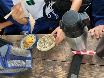 今日は、朝から自分の昼食の用意をすることから一泊移住が始まっています。