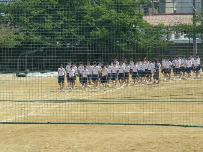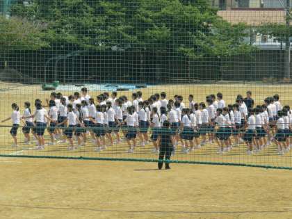 晴天のもと、学年別の体育大会の練習が始まりました。まずは、1,2時間目は3年生です。中学生生活最後の体育大会。「一生懸命」「力強い行進」「心を前向きに」「団結で」「先輩での誇り」など 本番むけて練習を行っています。