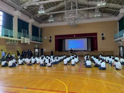 まず5限目は、各学校の紹介や講話を3年生全員で聞きました。