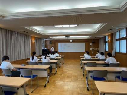 「看護」講座では、看護師の仕事の詳細を教えてもらい、聴診器も手に取らせてもらいました。