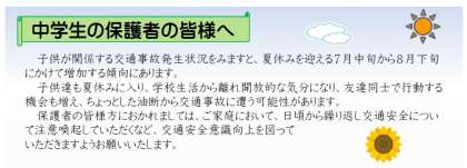 ⇒ 夏季休暇中における子どもの交通事故防止対策について