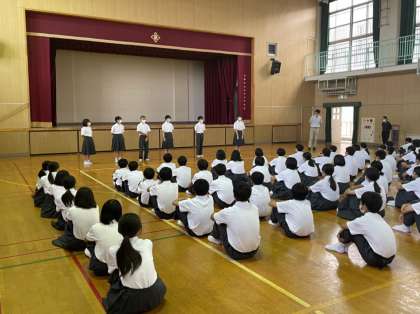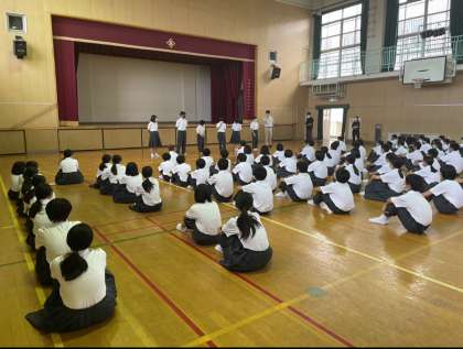 「中学生になって成長したところ」について、各クラス2人ずつが自ら立候補して全員の前で発表しました。