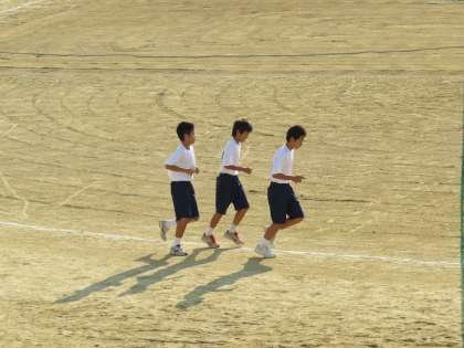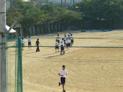 朝から陸上部の皆さんが練習をしています。 大阪市総合体育大会 学校の体育大会にむけて。