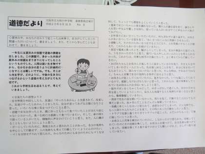夏休み、あなたのまわりで起こった出来事で、自分がしてしまった間違った行いについて 1年生(9月12日)